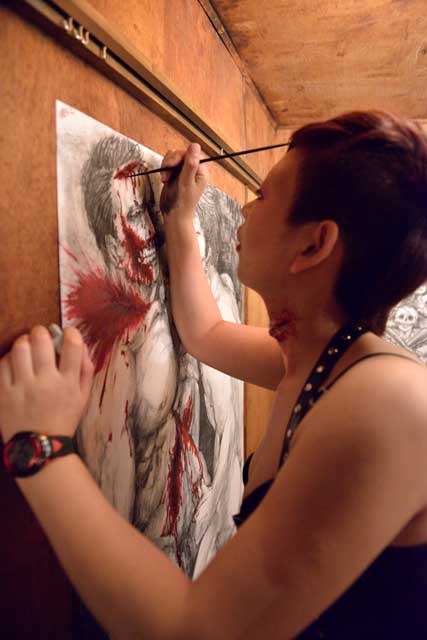 Oosu Nagoya Japan I'm going to do live painting at the gallery "Bakeneko-Yashiki(化け猫屋敷)". This event's name is "Genndai-Muzan-Emaki(現代無残絵巻)". It means "Modern Splatter Arts". Me and three artists will draw here with the Candle artist . We never let you down. I swear.