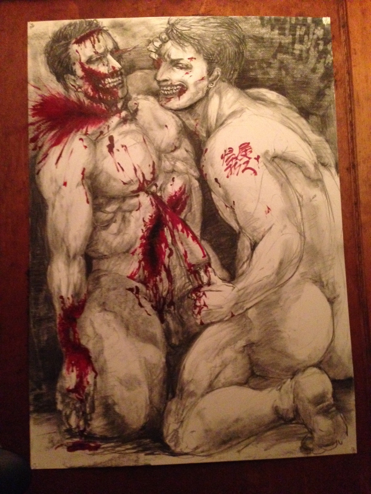 I'm going to contribute to "Jingai-Danshi-Ryona-Anthology(人外男子リョナアンソロジー)". ("Jingai Danshi " means Monster like human. And "Ryona" means violence . This art book will be awesome. Various grotesque artists are invited it. You can buying it at the next Comic Market in Tokyo. Its space is East Block "P" 48b "Tantramachine.com".